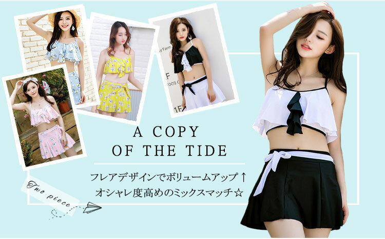 【送料無料】【在庫一掃/限定価格】 レディース タンキニ 水着 2点セット 花柄 ワイヤー 入り フリル リボン バスト パンツ 上下セット オリジナル 体型カバー ボリューム アップ ふんわり フィットネス 大きいサイズ カワイイ Y型ネック オシャレ
