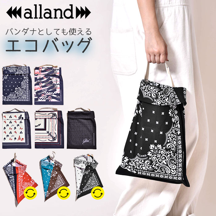 エコバッグ 折りたたみ コンパクト 楽天 バンダナ柄 軽量 軽い おしゃれ メンズ レディース ALLAND オルランド BANDANA BAG バンダナ ハンカチ 綿100% コットン ペイズリー トートバッグ アウトドア 旅行 サブバッグ コンビニ キャンプ フェス ブランド