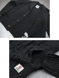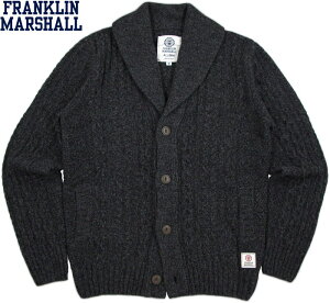 FRANKLIN&MARSHALL/フランクリンマーシャルKNITWEAR WOOL CARDIGAN LONGショールカラー ケーブルニットカーディガン/ケーブル編み、アランニット風 カーディガンBLACK(チャコールブラック)/KNMAL051ANW16