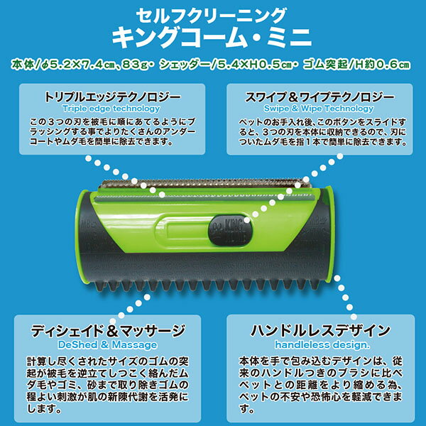 キングコームミニ (猫・小型犬・中型犬用) KKRAM 毛 ペット 取り 犬 猫 ペットブラシ グルーミング 抜け毛 毛玉取り 抜け毛取り 毛取り 洋服 毛取りクリーナー 衣類 ファンタジーワールド 【送料無料】